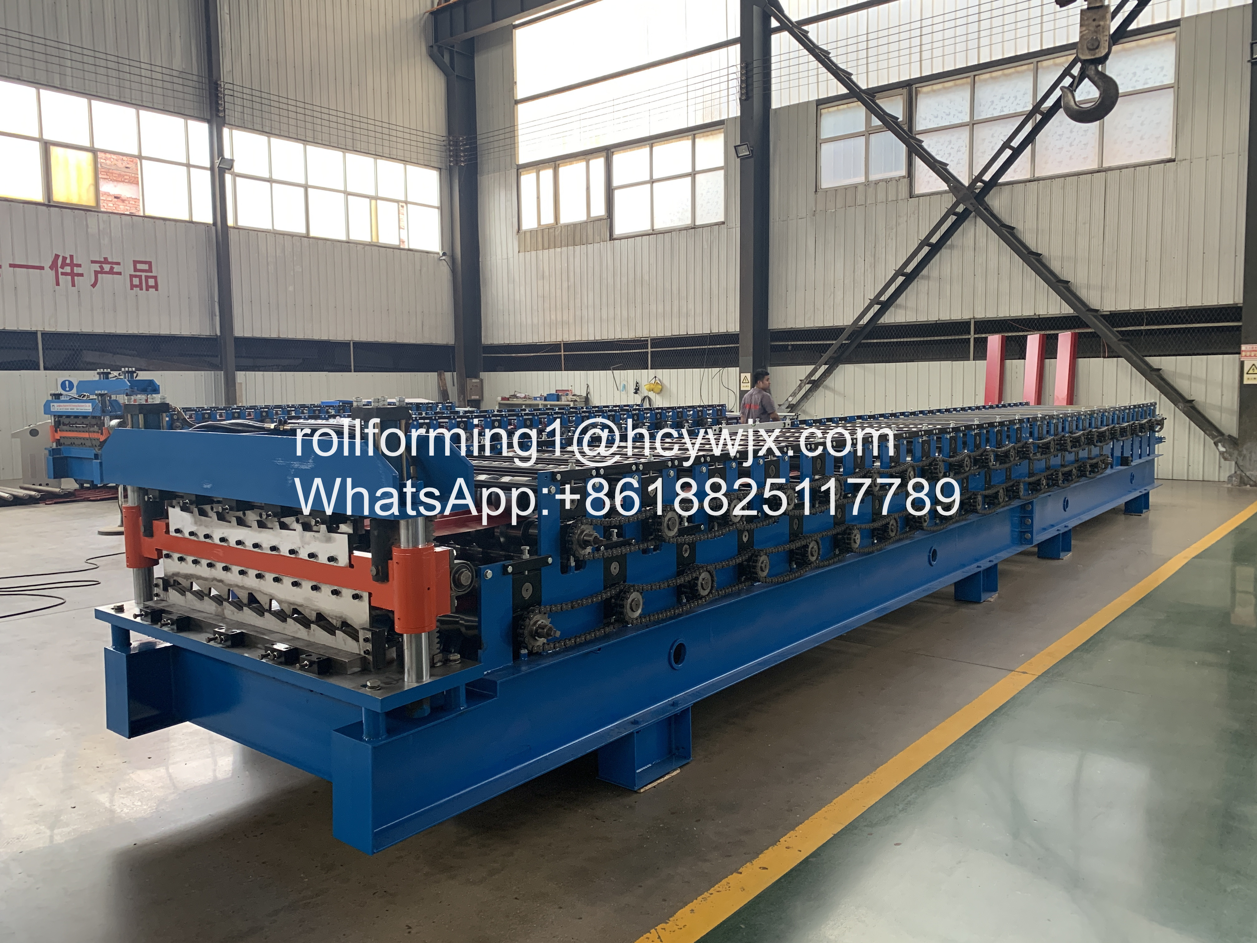 Máy tạo hình cuộn hai lớp của chúng tôi được làm bằng thép tấm tráng màu, con lăn uốn lạnh thành tấm áp lực dạng sóng khác nhau, phù hợp cho các tòa nhà công nghiệp và dân dụng, nhà kho đặc biệt, lợp kết cấu thép nhịp lớn, tường và trang trí bên ngoài của ngôi nhà, v.v.