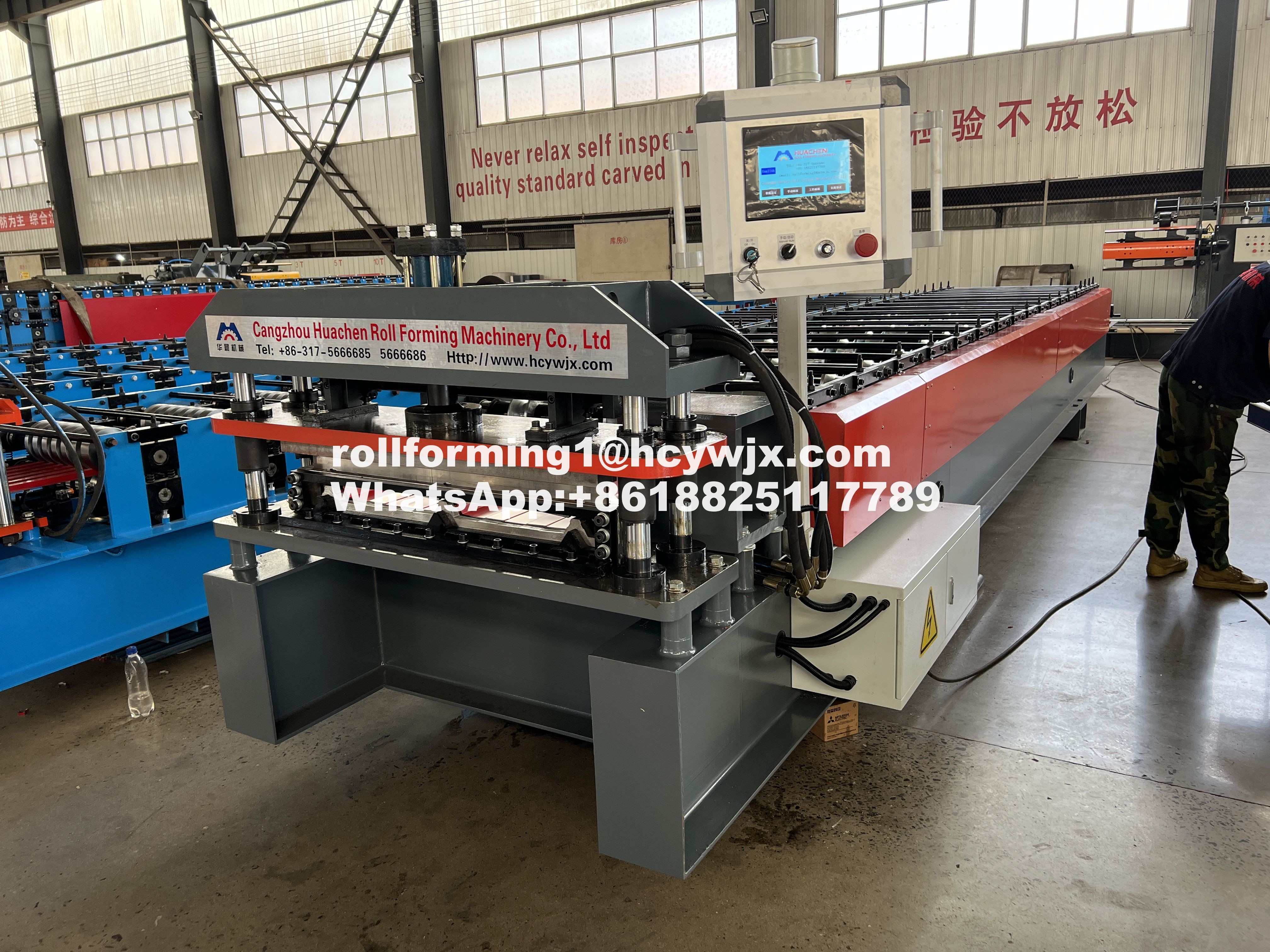 Máy tạo cuộn tấm mái nhà là một máy tạo cuộn kim loại được thiết kế đặc biệt để sản xuất các tấm mái nhà dài có lớp đá.Máy này được trang bị 18 trạm cuộn và một hệ thống điều khiển PLC để đảm bảo hoạt động trơn tru của nóVề mặt cắt, Máy tạo cuộn tấm mái nhà được thiết kế với loại cắt thủy lực. Màu sắc của máy cũng có thể tùy chỉnh theo nhu cầu của khách hàng.Máy chế biến cuộn tấm mái nhà có chiều dài lên đến 20 mét và có khả năng sản xuất tấm mái nhà dài hiệu suất cao với đá phủ.