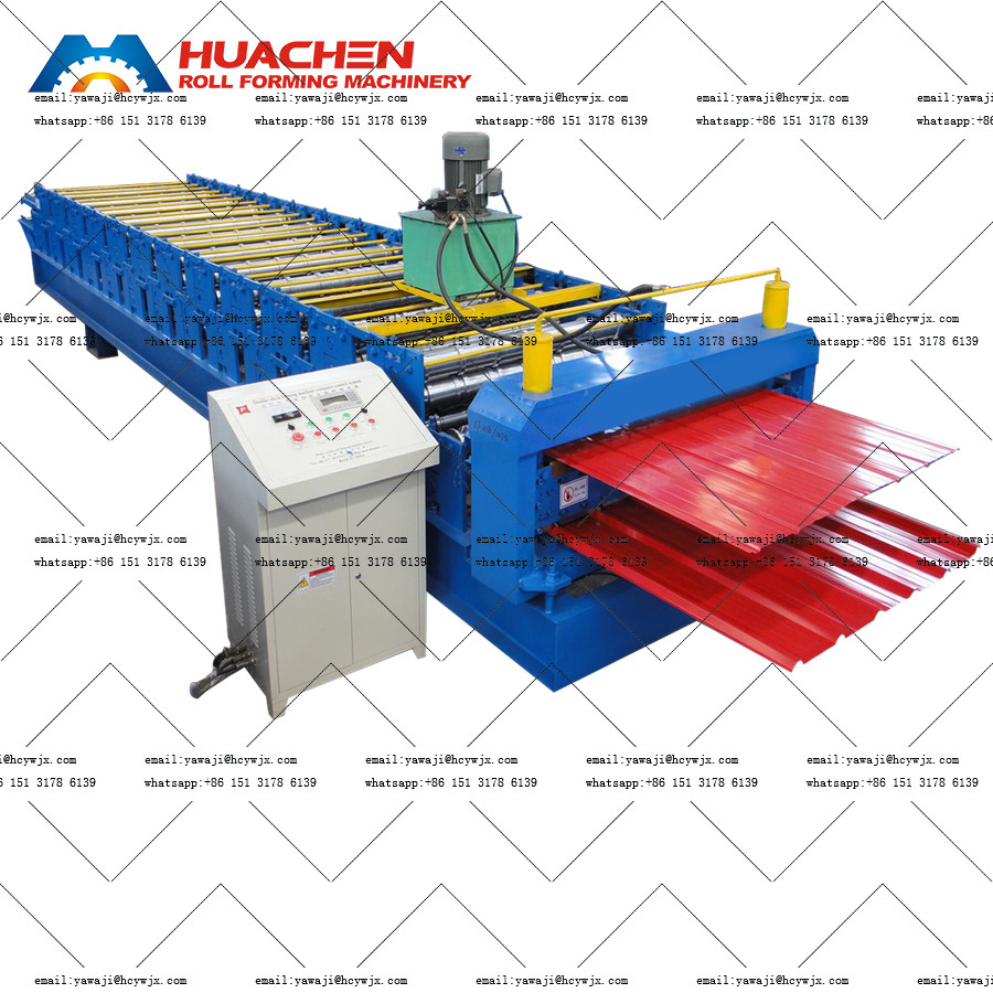 Bước đầu tiên của máy ép gạch trapezoidal hai lớp là chuyển tấm.nó được trang bị một thiết bị cho ăn để ăn trơn tru tấm kim loại để được xử lý (chẳng hạn như tấm thép màuCác thiết bị này thường bao gồm một con lăn được vận hành bởi một động cơ để xoay lăn.Bảng được đặt trên cuộn và được chuyển đến liên kết chế biến tiếp theo dưới tác động của ma sátTốc độ của con lăn có thể được điều chỉnh theo nhu cầu sản xuất để phù hợp với nhịp độ của quá trình hình thành tiếp theo.