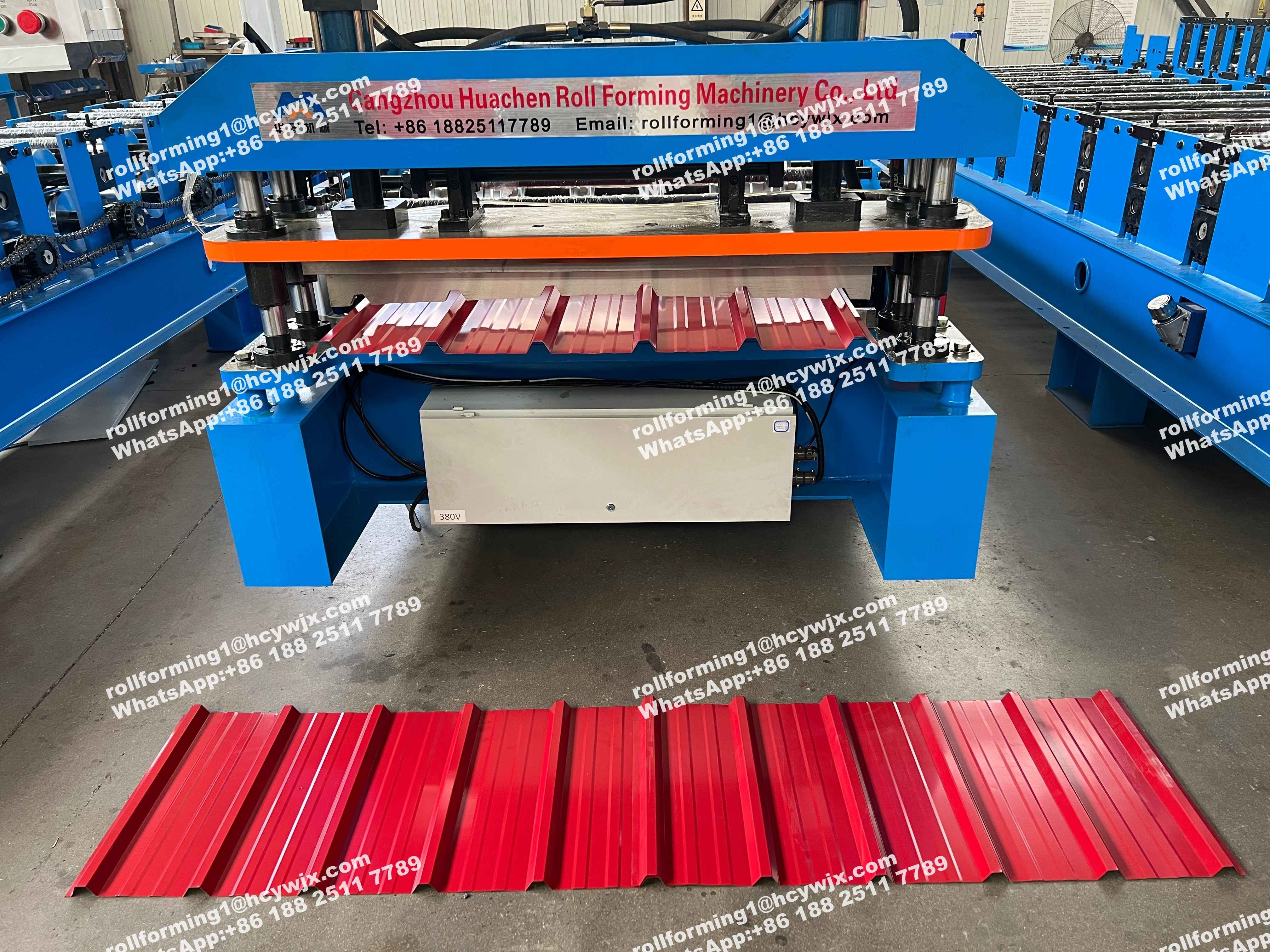 Máy tạo cuộn tấm mái cũng được gọi là máy làm tấm mái hoặc máy tấm mái. Máy tạo cuộn tấm mái bao gồm uncoiller, thiết bị hướng dẫn, đơn vị hình thành cuộn,thiết bị dừng để cắt, bàn chạy ra, hệ thống thủy lực và bộ điều khiển điện và được sử dụng rộng rãi trong xây dựng thép cấu trúc kho quy mô lớn, nhà máy, siêu thị, trung tâm mua sắm, thị trường thương mại, khách sạn,biệt thự, nhà ở và các loại nhà kính khác nhau.
